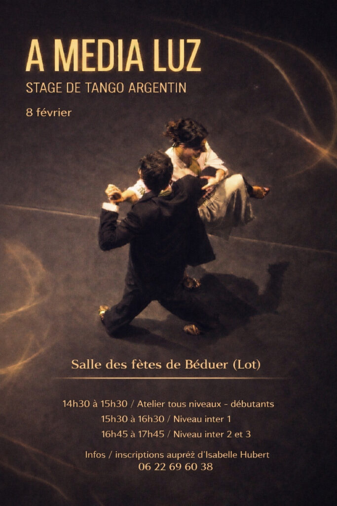 Stage le dimanche 30 novembre avec Christine et Laurent à Béduer (Lot)par A Media Luz TangoPublié le 27 novembre 2025Les commentaires sont désactivés.